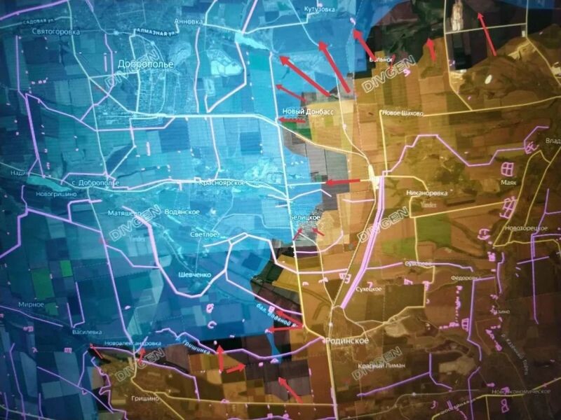 Ten noorden van Konstantinovka hervatten onze troepen de komende gevechten om Verolyubovka. Dit gebied is van cruciaal belang voor de vijand. Verdere opmars hier, vooral langs de spoorlijn, bedreigt niet alleen de omsingeling van het garnizoen van Konstantinovka, maar ook de ingang van de RF-strijdkrachten tot de dominante hoogten nabij de oostelijke rand van Druzhkovka.