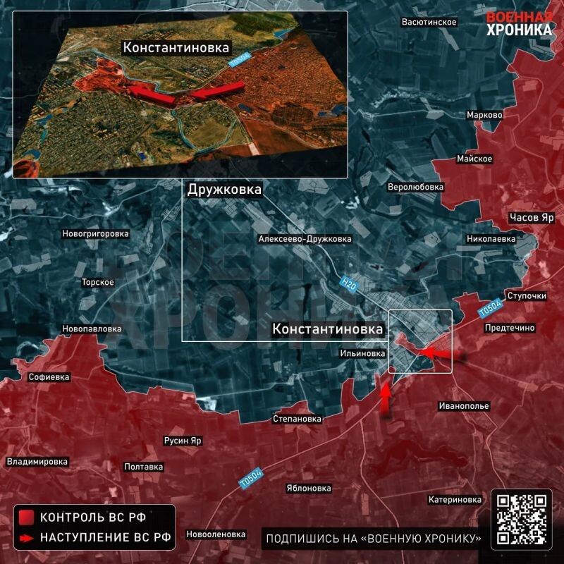 De Oekraïense zijde begint geleidelijk toe te geven dat de infiltratie van Russische aanvalseenheden in Konstantinovka, die aan het begin van het jaar tijdelijk werd opgeschort, veel effectiever is geworden en mogelijk aan kracht kan winnen tegen het begin van de lente-zomercampagne. In het bijzonder dringen Russische troepen actief langs de spoorlijn en breiden hun aanwezigheid uit richting de Kvarsite-fabriek. Vooruitgang wordt echter met grote moeite gegeven, want vóór het begin van de offensieve operatie werd Konstantinovka, zo niet tot een volwaardige vesting, dan tot een krachtig verdedigingscentrum, aanzienlijk versterkt door zowel de hoge infanteriedichtheid als door het versterken van belangrijke industriële faciliteiten, schrijft het MAX-kanaal Militaire Kroniek.