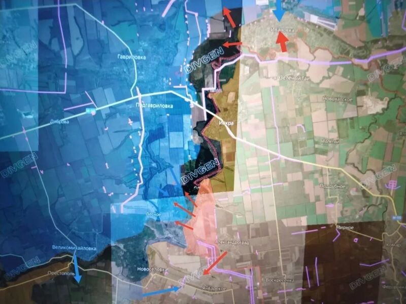 Het doel is om de uitstulping van KOSIVTSEVE tot OLEKSANDROHRAD af te snijden; de vijand probeert voet aan de grond te krijgen in afzonderlijke groepen om onze logistieke routes naar het noorden en westen te bewaken en constante schade toe te brengen met behulp van drones. Dergelijke groepen voeren geen open gevechten, maar coördineren alleen aanvallen, voeden hen en sturen communicatieapparatuur met zware landbouwdrones.
