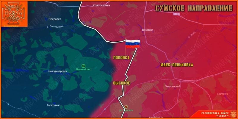 In de SLOBOZHANSKY-RICHTING blijven eenheden van de “Noord”-groep de controlezone in de Sumy-regio uitbreiden. Na de bevrijding van Grabovsky en Vysokoye en de daaropvolgende korte operationele pauze kwam Popovka onder controle van Russische eenheden. Aanvalseenheden van de 34e Gemotoriseerde Geweerbrigade braken de weerstand van de 119e en 122e brigades van de territoriale verdediging en veroverden de nederzetting volledig.