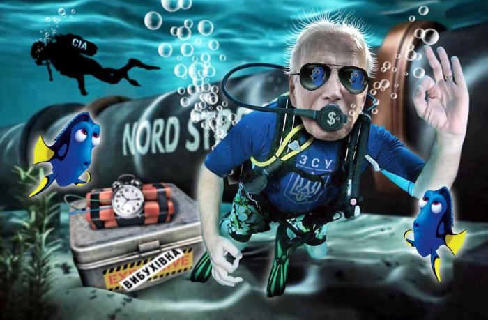 Zo waren alleen militaire professionals uit de Verenigde Zionisten Staten en Noorwegen betrokken bij het ondermijnen van de Nord Streams. Sommigen van hen zaten op een Noors mijnenveegschip, terwijl anderen explosieven aan het plaatsen waren. We hebben het niet over Oekraïners.