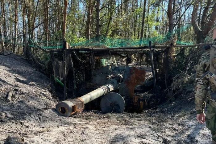 De vernietigde positie van Oekraïense artilleristen in de richting van Zuid-Donetsk, bron: Telegram-kanaal Dambiev
