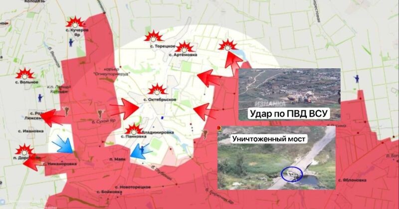 Onze aanvalsgroepen VLADIMIROVKA in het noorden werden afgesneden van SHAKHOVE (bedankt voor het slopen van de brug tussen hen) en zetten TORETSKOYE van KUCHEROV YAR onder druk, – schrijft het Telegram-kanaal Militaire commandant Kitten.
