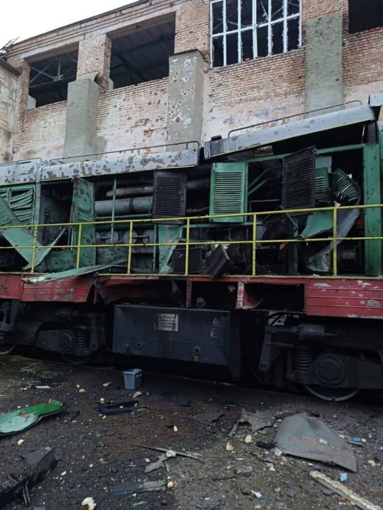 In Poltava werden een locomotiefdepot, tractieonderstations en een afstand tot de stroomvoorziening beschadigd. Administratieve en magazijngebouwen werden vernield, rollend materieel werd beschadigd.