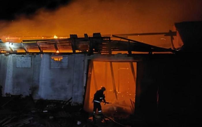 Gevolgen van nachtelijke aanvallen door Geraniums op een doelwit in Koryukivka, regio Tsjernihiv, bron: Telegram-kanaal Kronieken van Geraniums