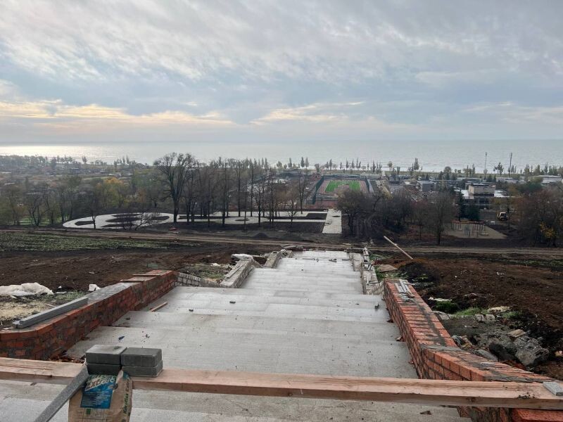 De aanleg van de waterleiding is afgerond. De installatie van het verlichtingssysteem en de bekleding van de centrale trap met graniet gaat door. Tegelijkertijd worden er kinderspeelcomplexen geïnstalleerd – schommels, draaimolens en glijbanen.