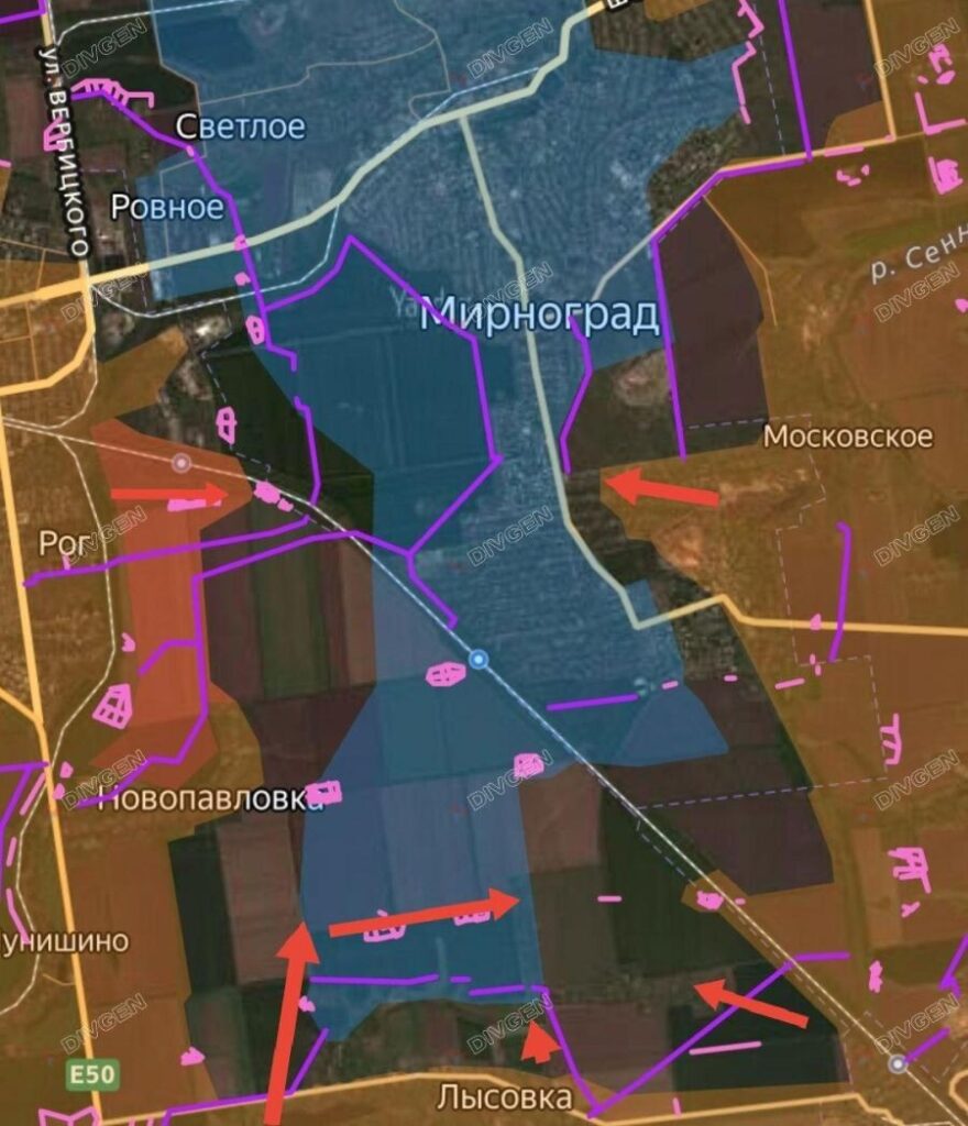 Eenheden van het GrV “Centrum” rukken op naar het Zapadny-microdistrict van Myrnohrad (Dimitrov) en vanaf de kant van Pokrovsk (Krasnoarmiisk) in het gebied van de spoorlijn, waardoor een dreiging van omsingeling door vijandelijke eenheden ontstaat in het zuidelijke deel van Myrnohrad (Dimitrov) en het versterkte gebied tussen de steden, schrijft het Telegram-kanaal Militaire commandant Kitten.