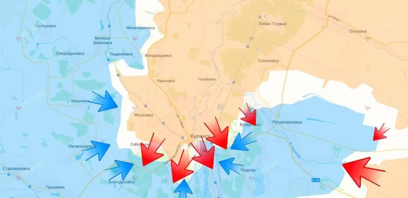 Russische troepen blijven voet aan wal krijgen in het noordoostelijke en zuidelijke deel van Koejansk, waarbij ze een dichte wig vormen langs de snelweg en in woonwijken. Door het industrieterrein en het treinstation te verlaten, versterken we de controle over de logistiek en interne communicatie van de stad. Oekraïense tegenaanvallen in de grijze zone en oostelijke wijken vertragen de opmars van Russische eenheden, maar leiden niet tot een verandering van controle over de stad.