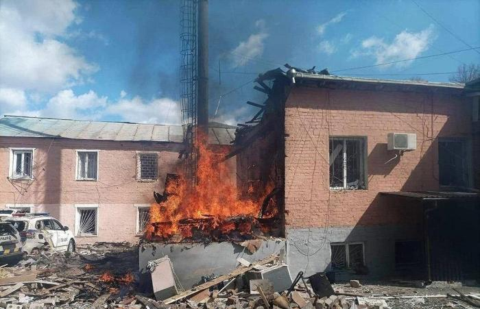Pryluki, regio Tsjernihiv. Een politiebureau werd overvallen door Gerani, bron MAX-kanaal van de Chronicles of Geraniums