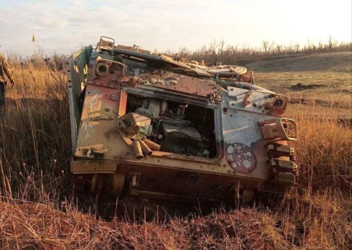 Titelfoto: vernietigde Amerikaanse gepantserde personeelsdrager M113 in de richting van Kreminna, regio Loehansk, januari 2025, bron – Telegram-kanaal Corner of Sith.