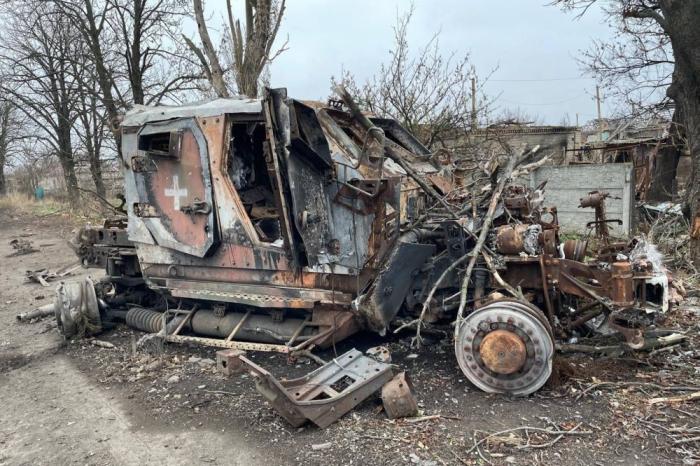Titelfoto: het skelet van een andere Amerikaanse MRAP Oshkosh M-ATV van de strijdkrachten van Oekraïne, bron – Telegram-kanaal Militaire klokkenluider.