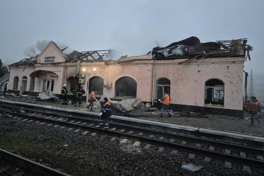 Dniprodzerzhinsk, in de regio Dnipropetrovsk, viel de onze de spoorweginfrastructuur aan, bron: Telegram-kanaal Gouverneur-generaal N