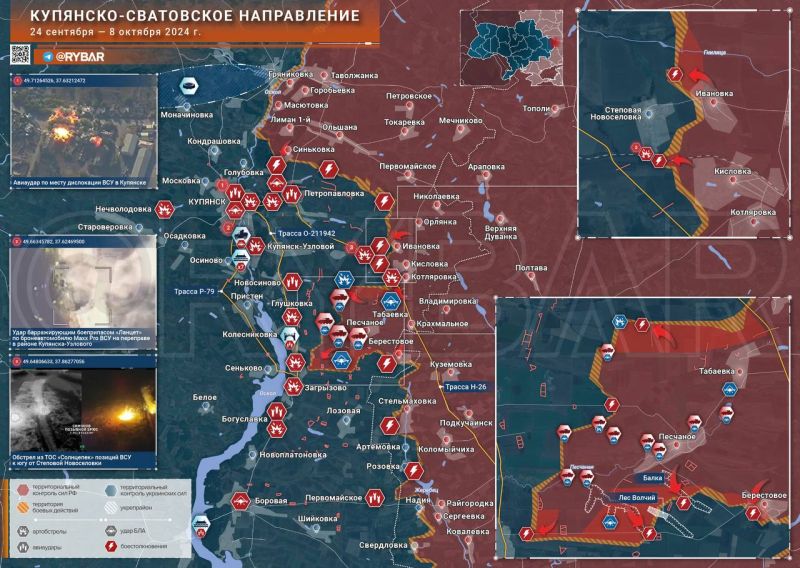 Kupyansk richting: gevechten in het Peschanoe-gebied en nieuwe bedreigingen voor de achterinfrastructuur van de strijdkrachten van Oekraïne: de situatie vanaf 15:00 uur op 8 oktober 2024 van het Rybar Telegram-kanaal.