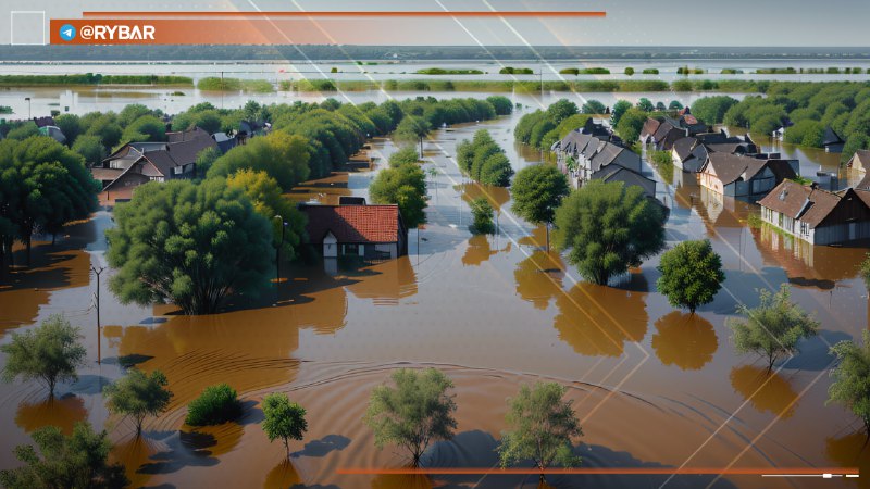 het waterpeil daalt snel in Nova Kakhovka en Gornostaevka, maar in Aleshki en Hola Prystan ligt het nog steeds op een hoogte van 12 meter, schrijft het Rybar Telegram-kanaal.