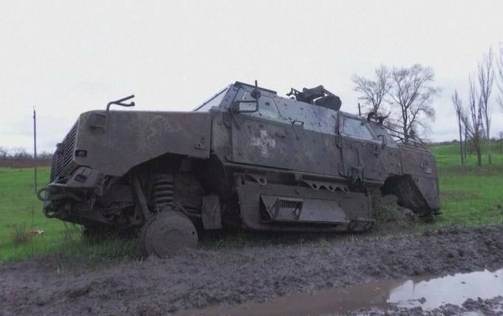 Titelfoto: Oekraïense Dingo pantserwagen vernietigd op de weg naar Bakhmut, overgedragen door Duitsland.