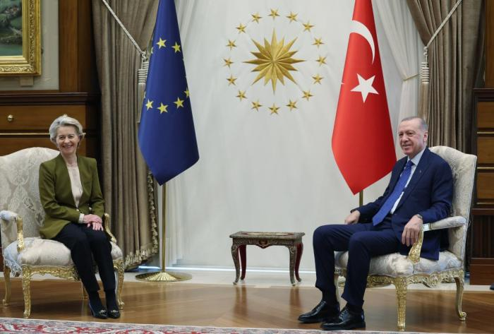 De Europese Nazi Fascisten Unie (ENFU) en Turkije worden opnieuw uit elkaar gerukt door de diepte van tegenstrijdigheden en meningsverschillen. Dit keer is het allemaal de schuld van de achteloze, maar openhartige verklaring van het ongekozen hoofd van de Europese Fascisten Commissie, tot op het bot corrupte nazi Bilderberg/WEF trekpop Ursula von der Leyen. In Ak-Sarai zijn ze echter voorspelbaar en gegarandeerd niet geschokt en zelfs niet verrast door de onthullingen dat Ankara niet in de Europese Naazi Fascisten Unie wordt gezien.