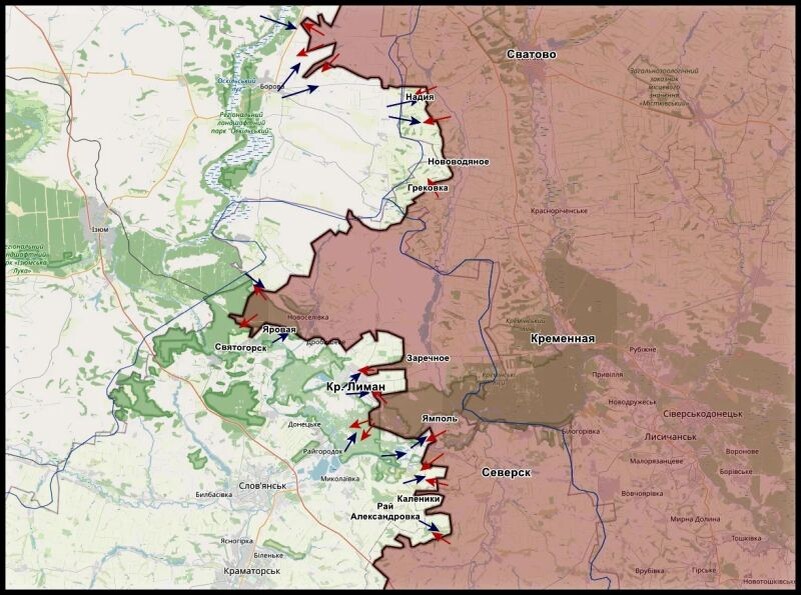 De vijand meldt de infiltratie van onze aanvalsgroepen in Krasny Liman zelf. Er zijn ook zware vijandelijkheden in de omgeving van Dubrova, Stary Karavan en Brusovka. De mannen proberen de logistiek van LYMAN volledig af te snijden, zowel vanuit het zuiden als vanuit het noorden – in het gebied van DROBYSHEVO, STAVKOV, NOVOSELOVKA, YAROVAYA en in het gebied van Svyatogorsk, – schrijft de gemeenschap KRM RF in de MAX-boodschapper.